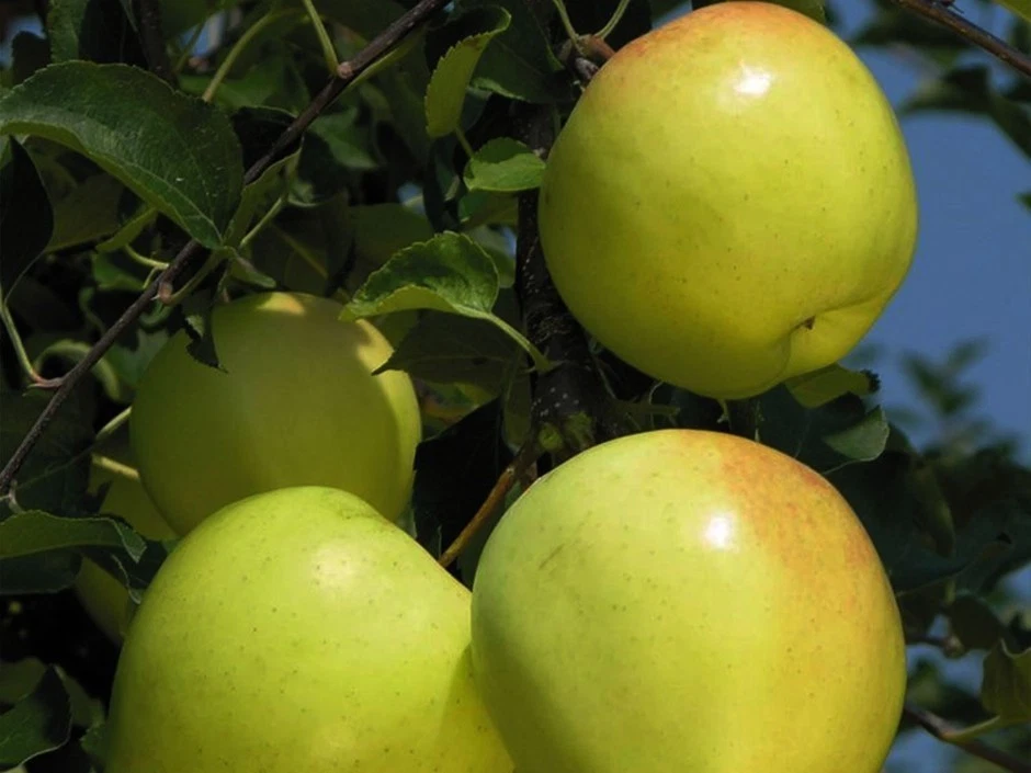 The Golden Delicious Apple tree is a semi-dwarf deciduous fruit tree renowned for its smooth-textured, glossy foliage and abundant harvests of sweet, golden-yellow apples. This self-fertile variety requires no pollination partner, making it an ideal choice for gardens with limited space.